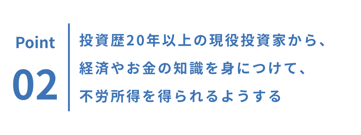 私は、現在も不動産や株などの投資によって生計を立てており、その経験と知識を皆さんに提供し、豊かな将来を迎えていただきたいという想いから、この学校を立ち上げる決心をしました。
