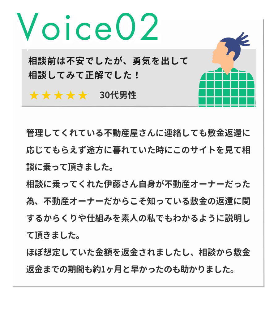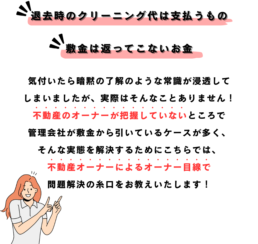 弁護士や法律事務所ではなく、現役の不動産オーナーによるサービスなので、貸主(オーナー)目線で的確な解決策をお伝え出来ます。